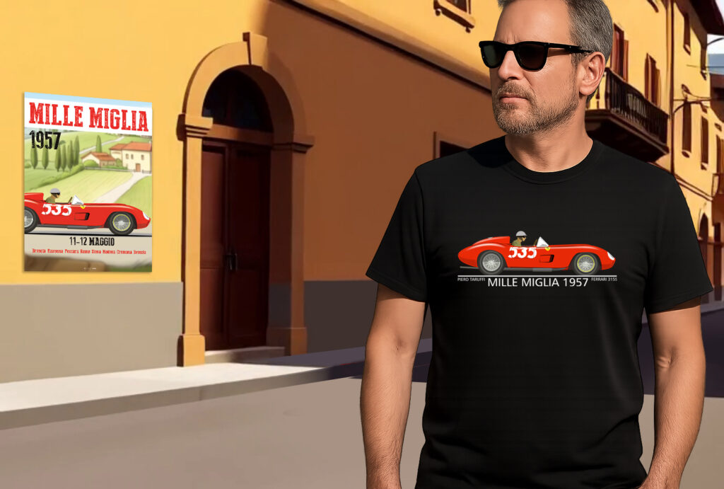 Our 1957 Mille Miglia design was a recent project which included artwork creation for a 1957 sports car, a retro style A2 printed poster featuring the car and of course our printed apparel. To promote the design and products we produced a short animated film featuring our design and there is a link opposite showing the finished film and products.